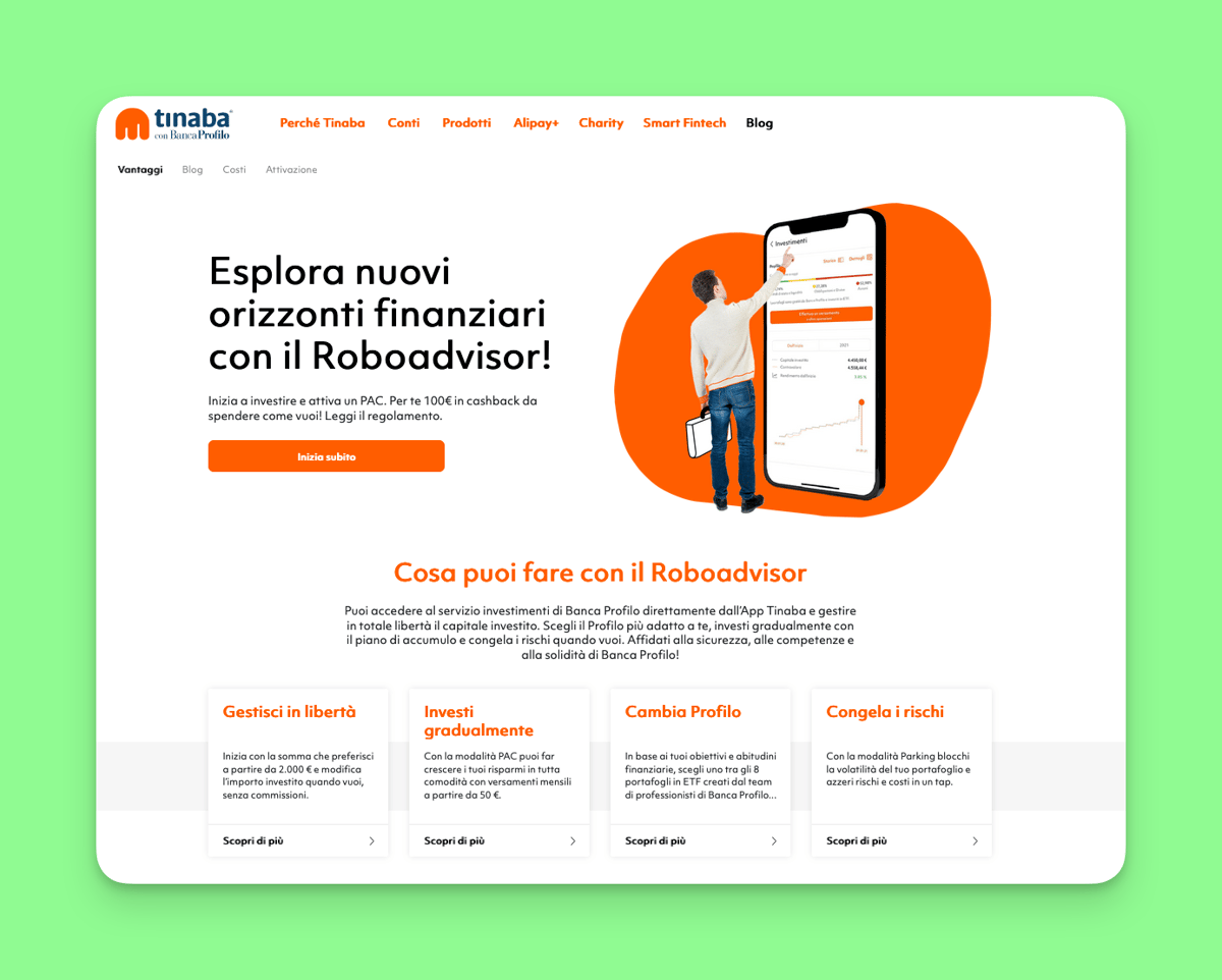Tinaba was started in 2015 and also offers a lot more than investing as they propose bank account options and offer prepaid cards. It's supported by Banco Profilo which is an independent bank listed on the stock exchange.