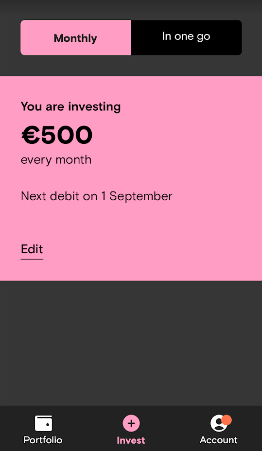 Through the Curvo app, you can fully automate your periodic investing. And you can make sure all your money is invested thanks to fractional shares.