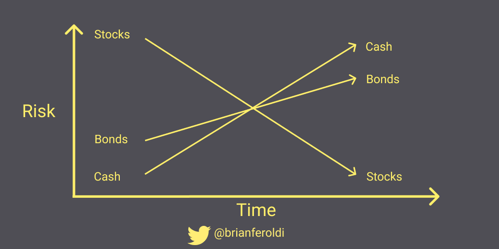 Cash on a savings account is risky on the long term, while stocks are the opposite (from @BrianFeroldi)