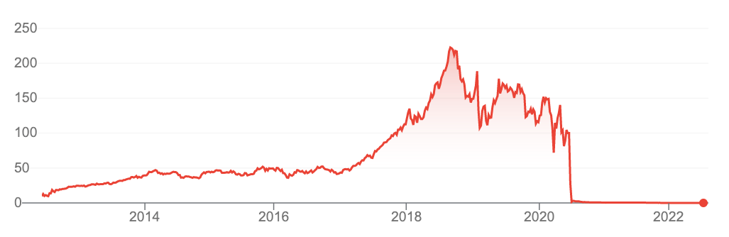 A prime example of specific risk: Wirecard's stock was doing very well, until it suddenly dropped to pretty much 0 euro, when it was revealed that major fraud had been committed by the company (from Google Finance)