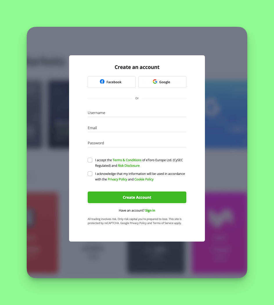 You can choose to create an account through either the web or mobile. Their app was quite smooth although it does feel a bit dated. What's interesting is that eToro really pushes the idea of social trading as you can create an account using your Facebook or Google information. They are one of the few brokers to offer this type of registration.
