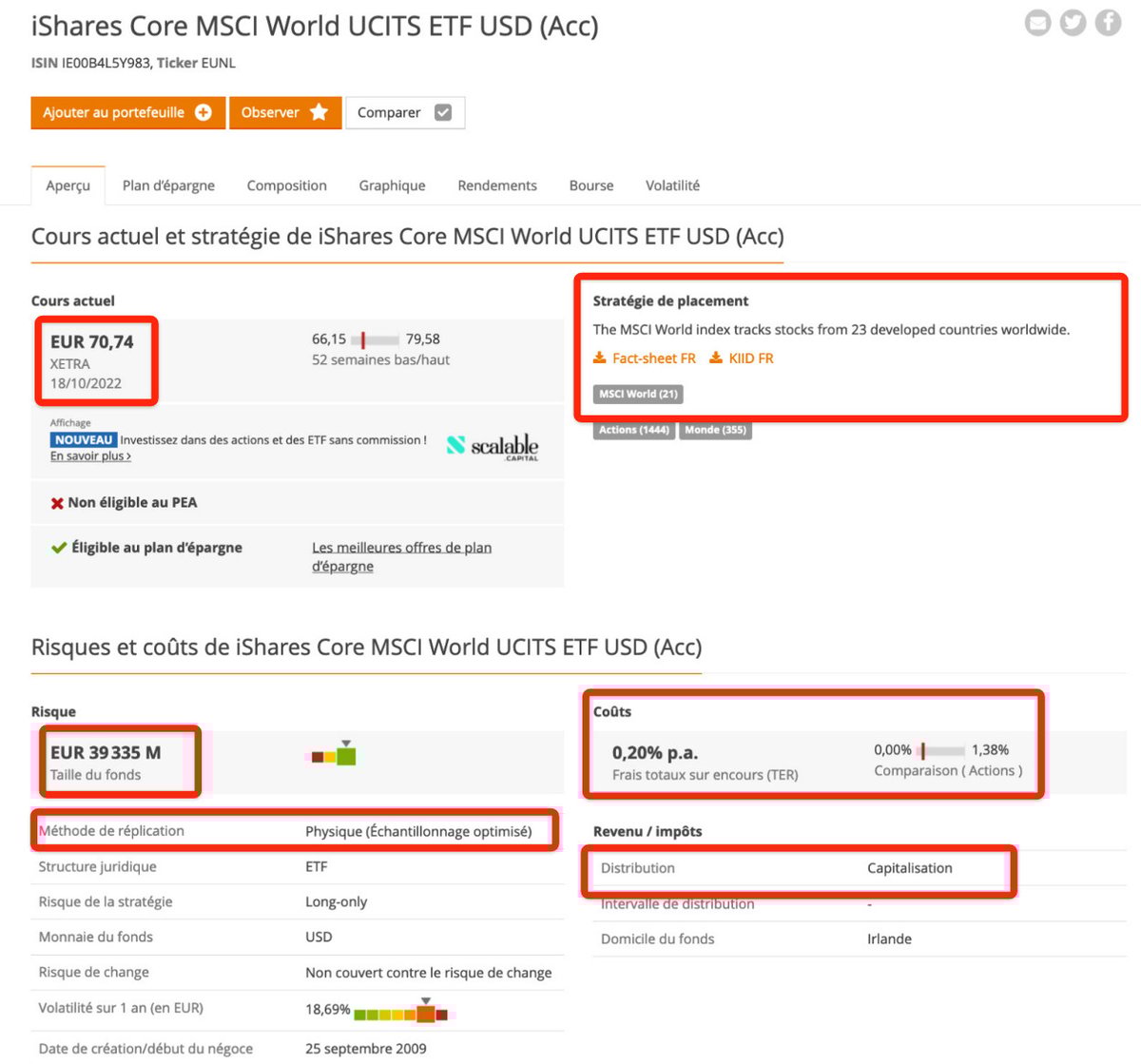 Below is what it shows for IWDA, a popular ETF we will look to buy down below (the red highlights are by us):