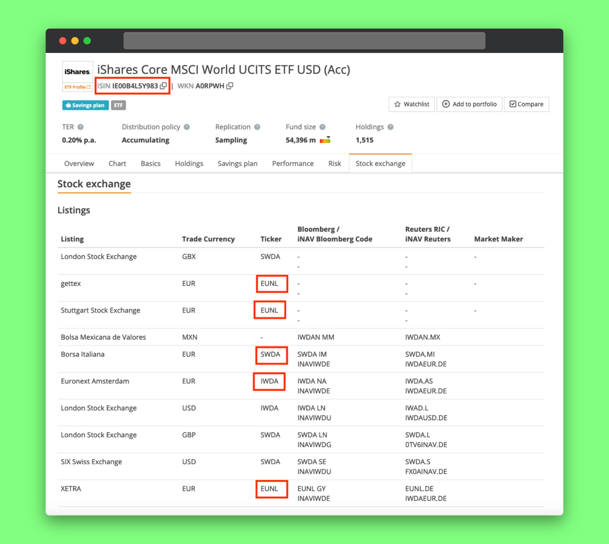 Navigating through the world of ETFs can be less intimidating once you understand the role of ticker symbols and the importance of ISINs. While IWDA, SWDA, and EUNL might seem like different investments, they are actually the same fund listed under different symbols on various stock exchanges.