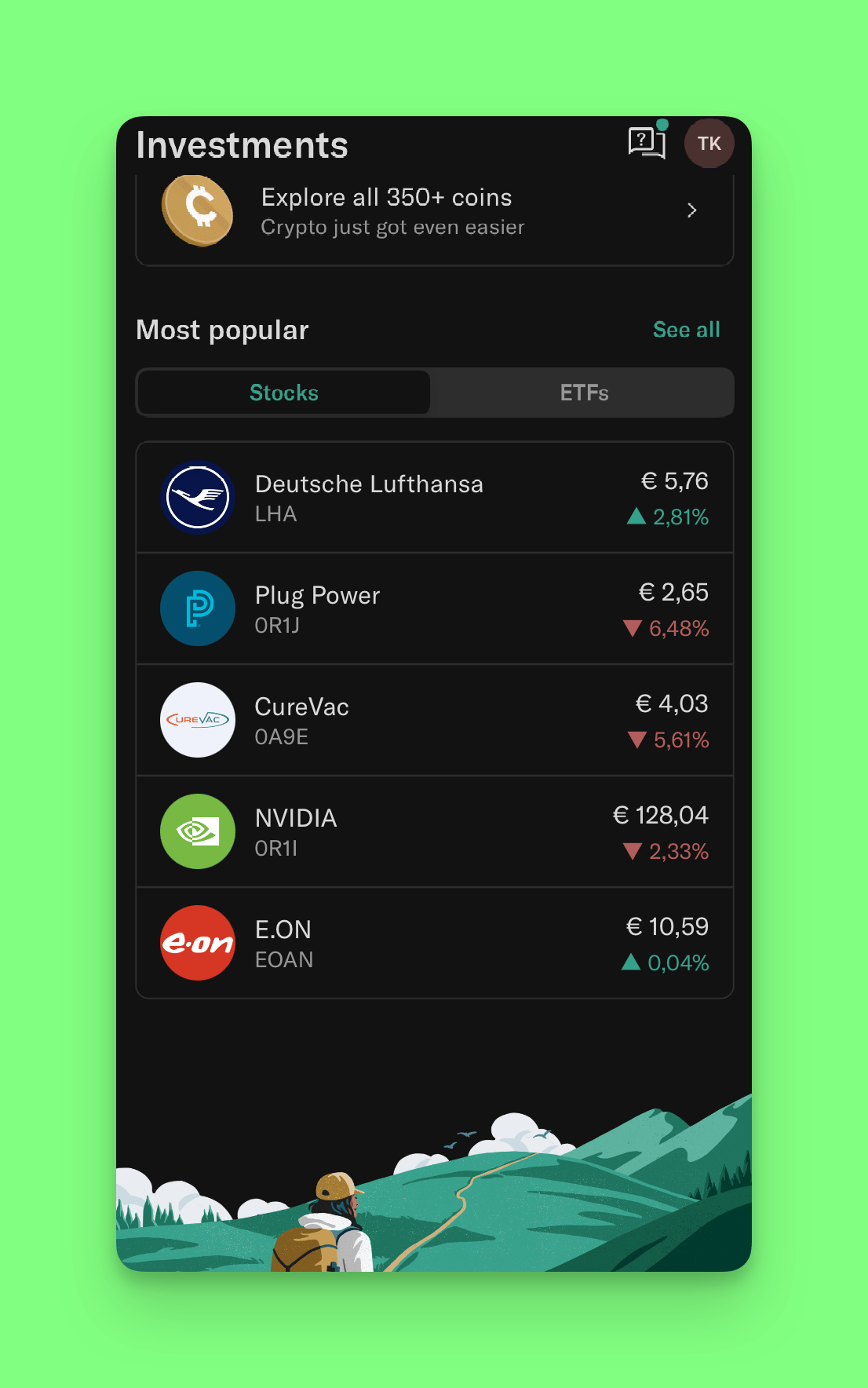 Although N26 doesn't have advanced trading options yet like options and futures, you get a sense that they want you to actively trade and buy some stocks. For example, in their app, they show you the most traded stocks which pushes you to potentially take action and buy a stock (or two!).